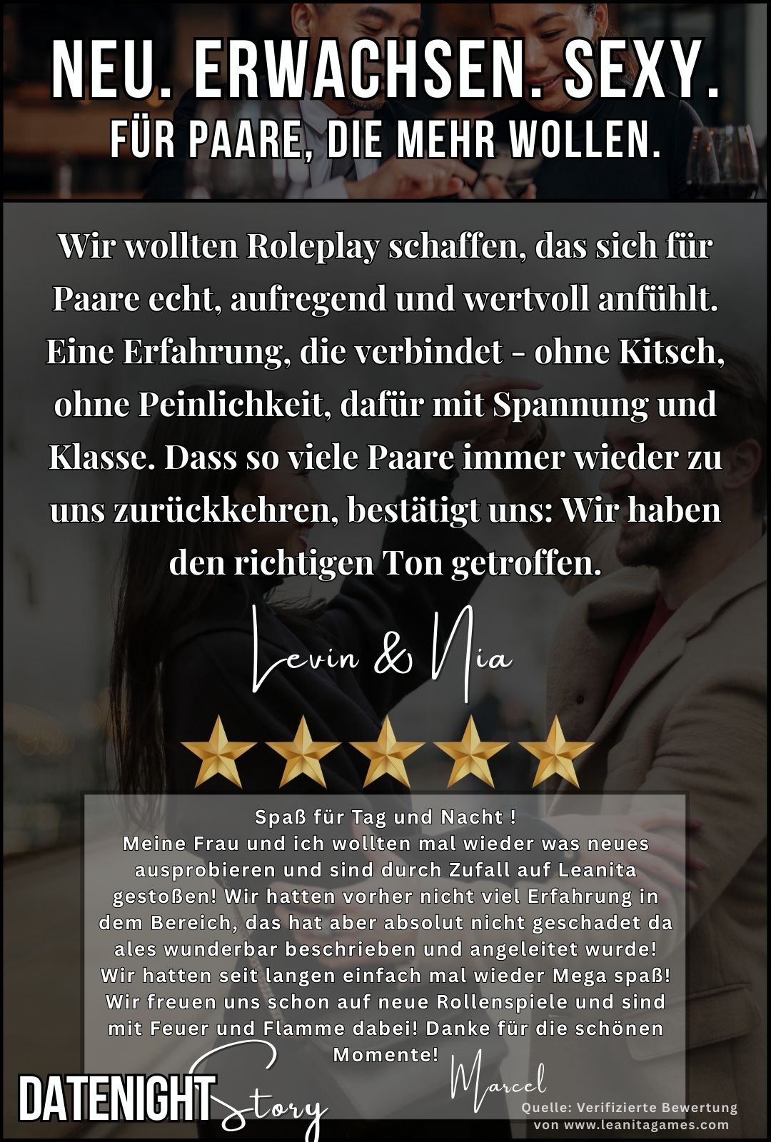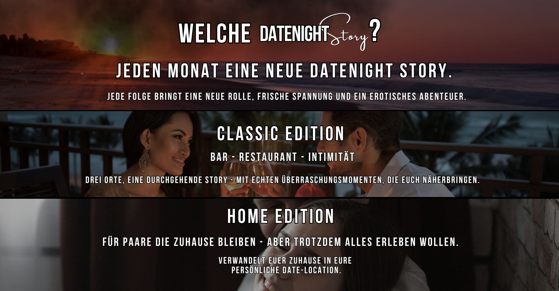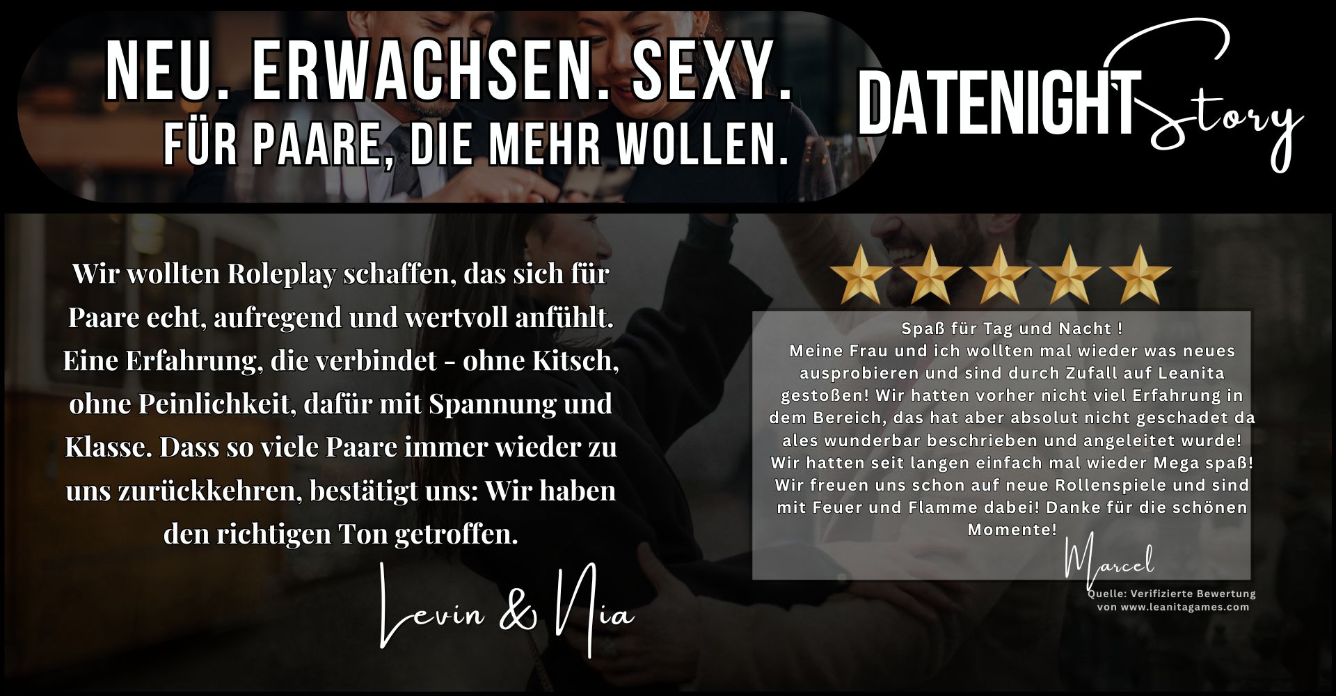 Für Paare, die lieber zuhause bleiben - aber trotzdem eine echte, erwachsene Date-Night erleben wollen.