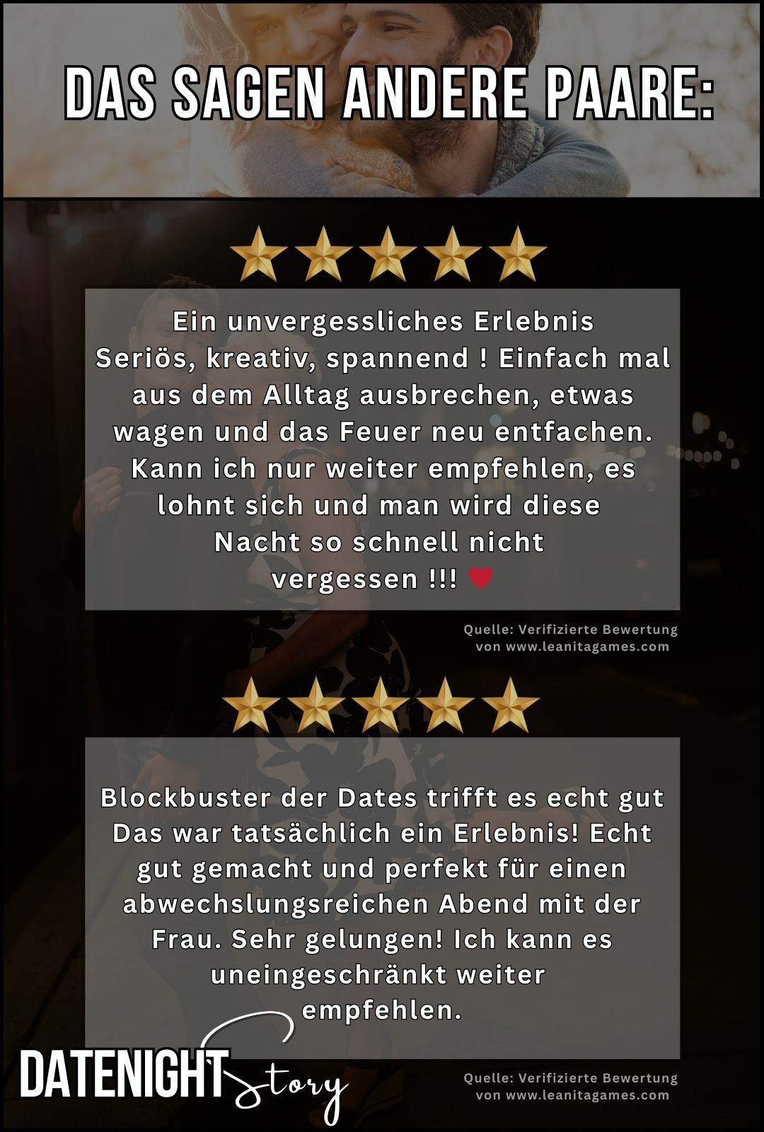 Perfekt für frisch Verliebte, langjährige Paare oder Eltern mit wenig Zeit - Hauptsache, ihr habt Lust auf etwas Besonderes.
