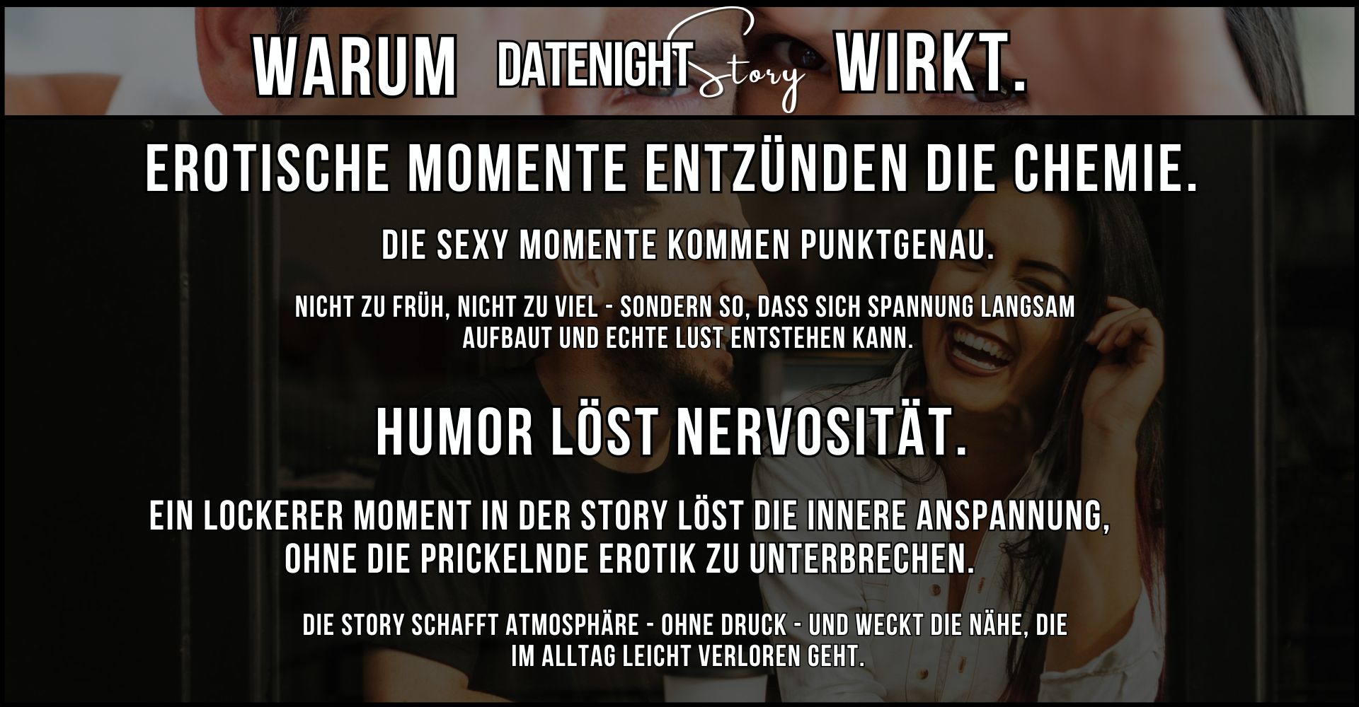 Nur echte Verbindung, Humor und erotische Spannung – in einem Stil, den Paare lieben.