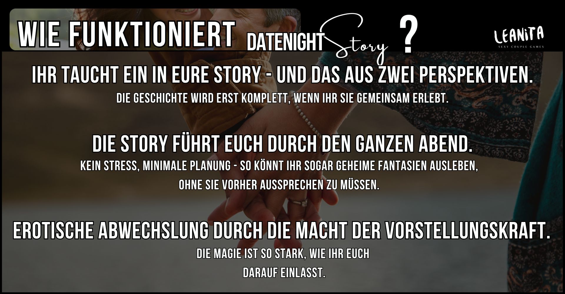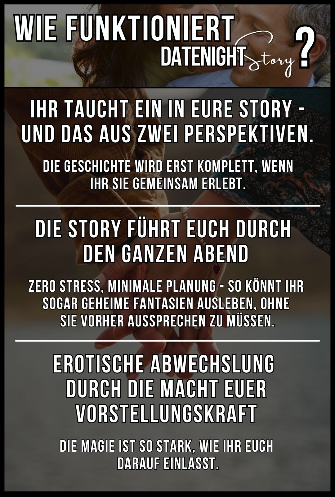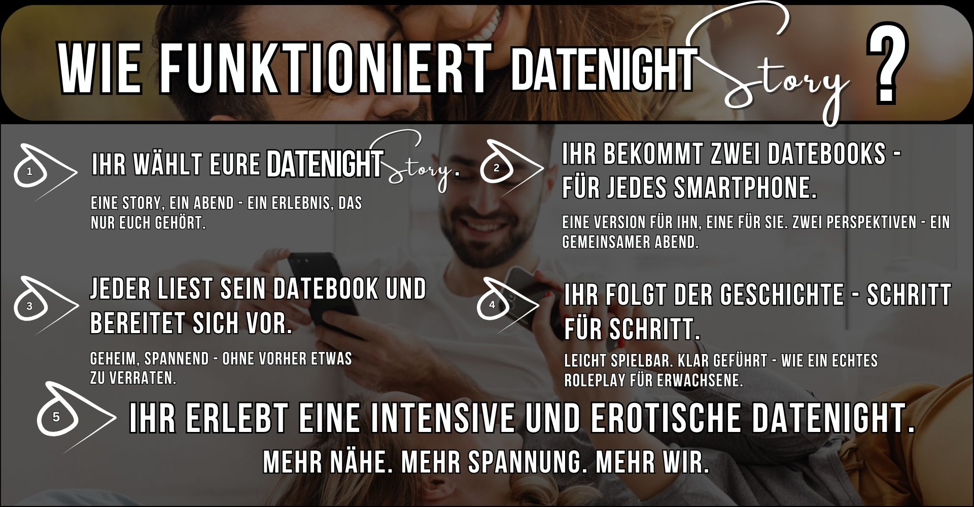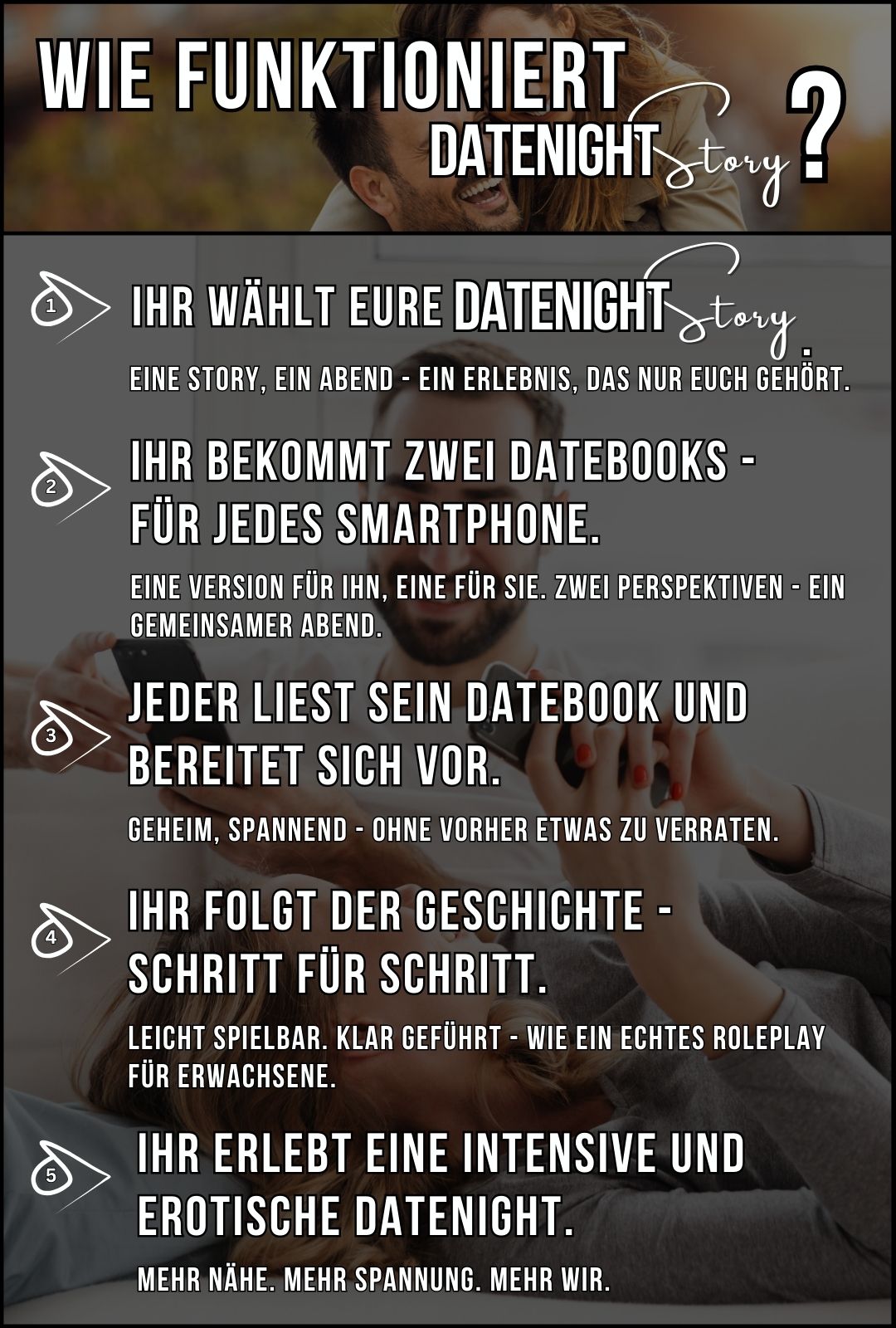 Eine DateNight Story ist ein geführtes Rollen-Erlebnis für Paare - erzählt aus zwei Perspektiven.